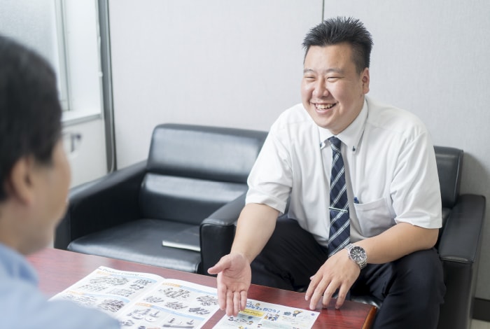 当社の営業には、新規の飛び込み営業はありません。基本は、担当エリアのお客様へのルート営業です。定期的に注文を受けるお客様へ納品にうかがったり、相談いただいた案件への提案を行ったり、期間が空かないように定期的に新商品の案内に行ったりします。継続的なお付き合いを重視していますので、お客様の仕事について学び、信頼関係の構築をできるよう、誠実な関わりを積み重ねていきます。