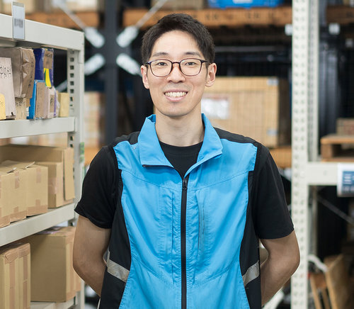 第一子の誕生を控え、「仕事と家庭を両立できる環境で働きたい」と考えたことが、武田産業への転職のきっかけです。前職は商社とは全く異なる業種だったうえに、ねじの知識もほとんどありませんでした。それでも、基本的に土日が休みでプライベートの時間を確保しやすそうだと感じたことや、条件面が希望に近かったこと、さらに社会に欠かせないねじを扱っている点に将来性を感じ、入社を決めました。入社以来、商品管理部に所属し、倉庫に入荷した商品の確認や保管、加工品の検品、出荷準備などを担当しています。ねじや加工品(カスタムオーダー品)は精密な現場で使用されることも多く、一つのミスが大きなトラブルにつながりかねません。だからこそルールを守り、周囲の方々と積極的にコミュニケーションを取りながら、一つひとつの作業を丁寧に進めることを心がけています。